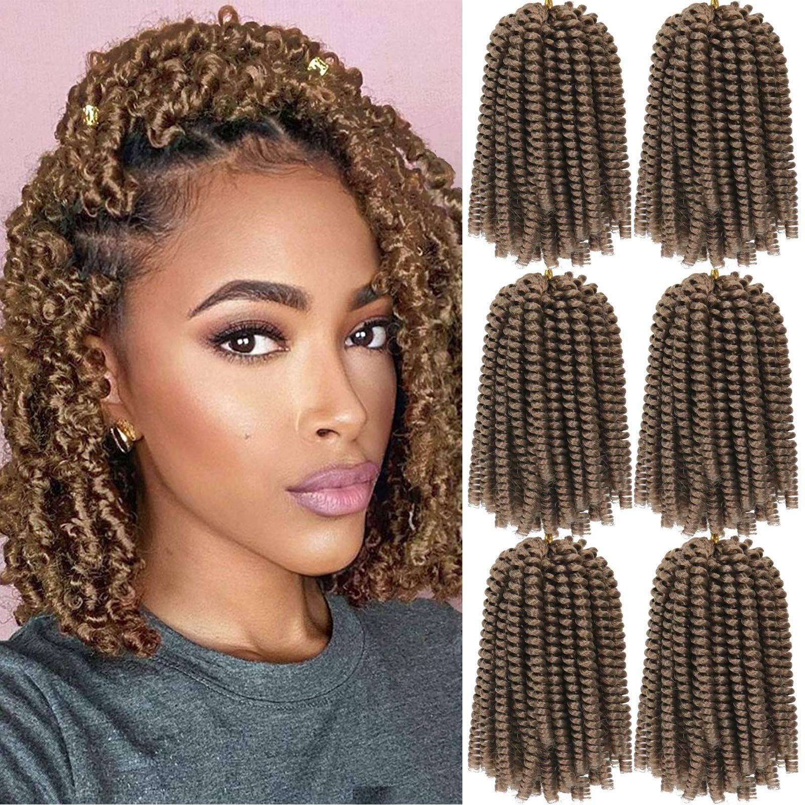 Amazon Com 6 Pack Spring Twist Crochet Braiding Hair Bomb Twist Crochet Hair For Black Women Low Temperature Synthetic Hair Extensions For Butterfly Locs Fluffy Twist Braids 15 Strands 50g Pack 8inch 27